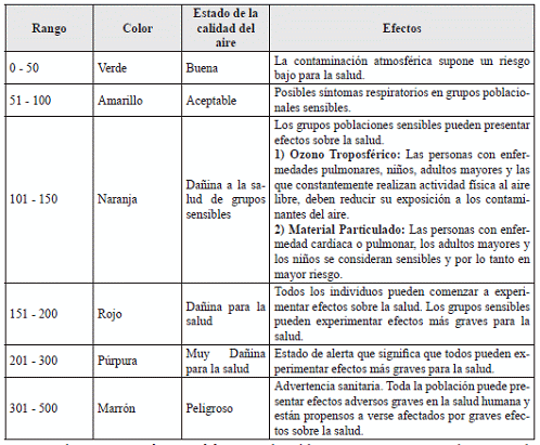 ARTÍCULO 18. ÍNDICE DE CALIDAD DEL AIRE (ICA). El ICA es un valor adimensional para reportar el estado de la calidad del aire en función de un código de colores al que están asociadas unos efectos generales que deben ser tenidos en cuenta para reducir la exposición a altas concentraciones por parte de la población. Este índice también será utilizado en el pronóstico de la calidad del aire.