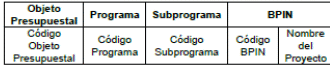 - Código Banco de Programas y Proyectos de Inversión (BPIN)