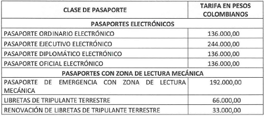 a) En el territorio nacional: Las tarifas por concepto de la expedición de pasaportes en el territorio nacional son: