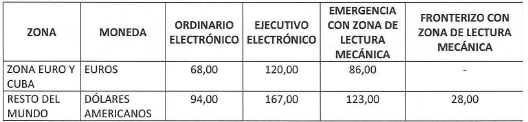 b) En el exterior: Las tarifas de la expedición de pasaportes en el exterior quedarán así: