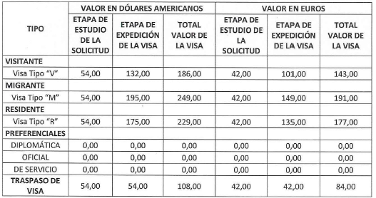 g) El valor a pagar en la etapa de estudio de una visa de visitante solicitada exclusivamente para realizar actividades en el marco de un programa de formación académica será de doce (12) euros si es solicitada en la zona Euro y Cuba, y de dieciséis (16) dólares de los Estados Unidos de América si es solicitada en el resto del mundo. El valor a pagar en la etapa de expedición será de diecisiete (17) euros si es solicitada en la zona Euro y Cuba, y de veintiún (21) dólares de los Estados Unidos de América si es solicitada en el resto del mundo.