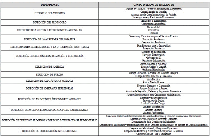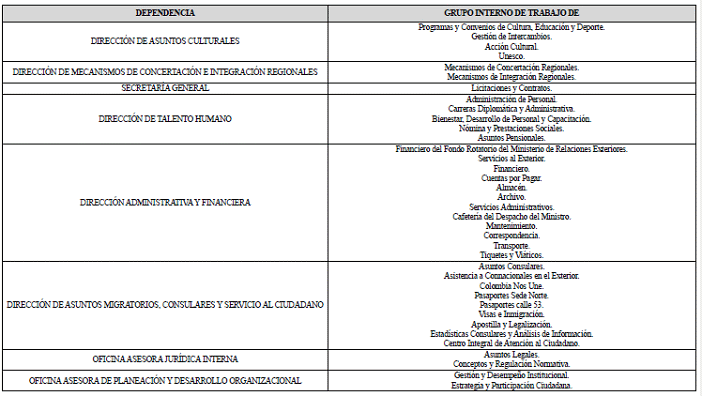 Por la cual se crean los Grupos Internos de Trabajo del Ministerio de Relaciones Exteriores.