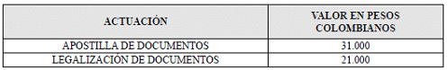 a) En el territorio nacional: La tarifa por concepto de la apostilla y legalización de documentos en el territorio nacional, es: