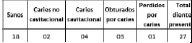 | 102 | COP por persona | 12 | N | Se debe reportar en consulta de primera vez de odontología. Debe registrarse una sola variable con longitud de 12 dígitos, donde los dos primeros dígitos corresponden a sanos, los dos siguientes dígitos corresponden a caries no cavitacional, los siguientes dos caries cavitacional, los dos siguientes a obturados por caries, los dos siguientes digitos a perdidos por caries y los últimos al total de clientes presentes al momento de la valoración. Por ejemplo, el valor 180204030127 se construyó así: 21-Riesgo no evaluado 0 -No aplica | SI |