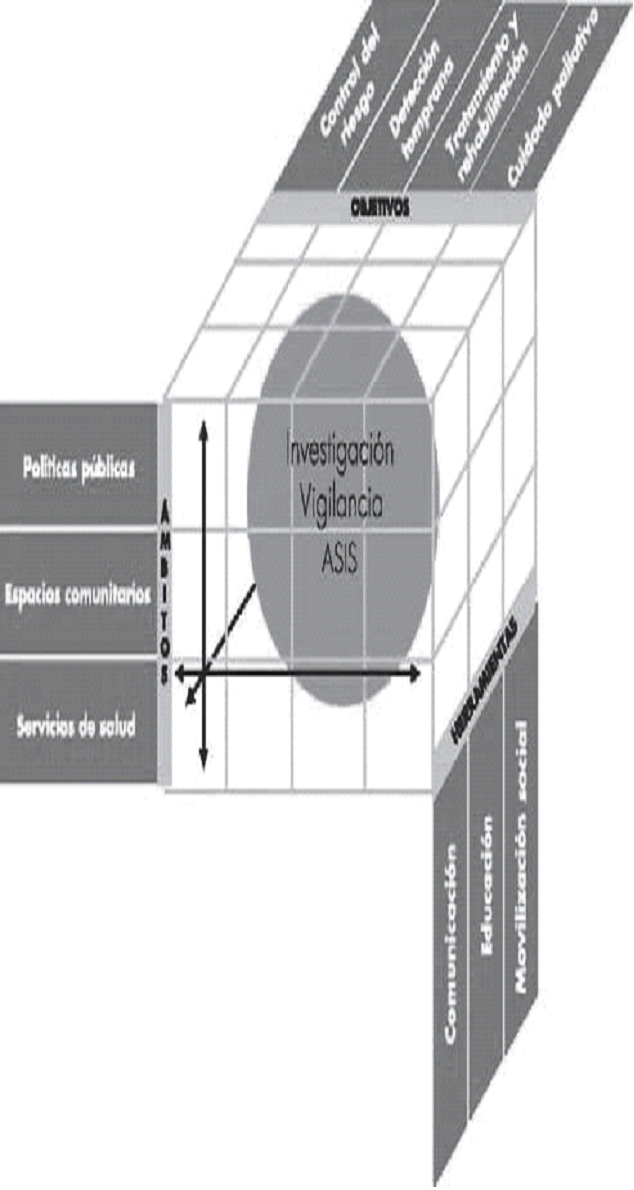 Los ámbitos para el desarrollo de las acciones están a nivel político, comunitario y servicios de salud, estos representan la oportunidad de integrar los abordajes poblacional y de alto riesgo mediante una acción coordinada que se propone, en una visión moderna de la salud pública, como elemento indispensable para el control de enfermedades y particularmente relevante para el control de enfermedades crónicas, debido a que en la mayoría de los casos estas no tienen un factor biológico identificable como condición necesaria para el desarrollo de la enfermedad.
