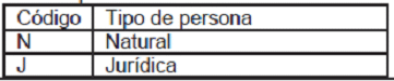 - Tipo de documento (según tabla “tipo de documento del representante legal").