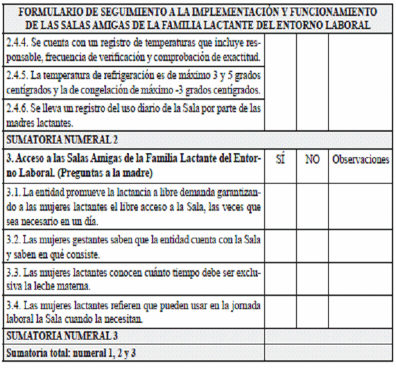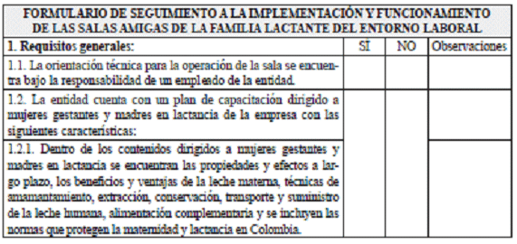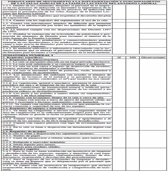 FORMATO DE SEGUIMIENTO AL FUNCIONAMIENTO DE LAS SALAS AMIGAS DE LA FAMILIA LACTANTE DEL ENTORNO LABORAL