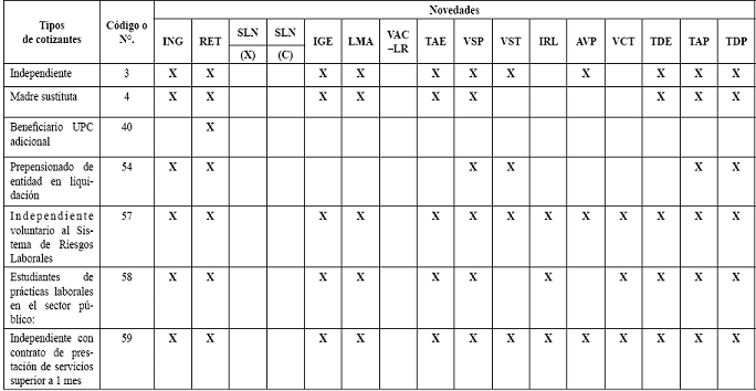 Este tipo de planilla deberá utilizarse cuando se paguen los aportes de los siguientes tipos de cotizantes: