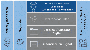 El artículo 2.2.17.2.1.1. del Decreto 1078 de 2015 distingue dos categorías de servicios ciudadanos digitales a saber, servicios base y servicios especiales. Su numeral 1 señala que son servicios ciudadanos digitales base aquellos que se consideran fundamentales para brindarle al Estado las capacidades en su transformación digital, los cuales son tres (3): Servicio de Interoperabilidad, Servicio de Autenticación Digital y Servicio de Carpeta Ciudadana Digital.