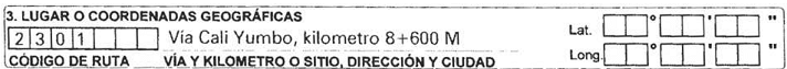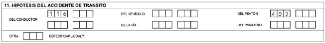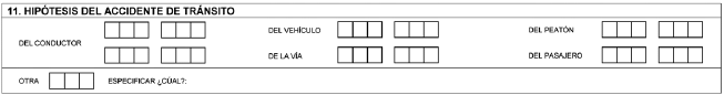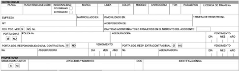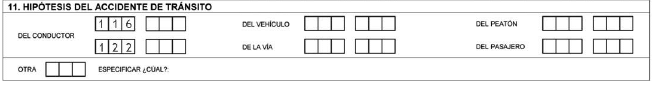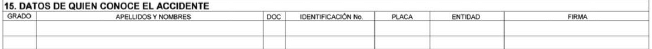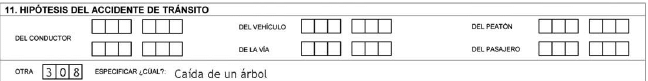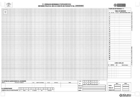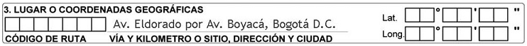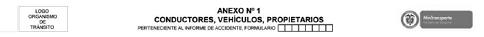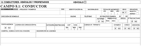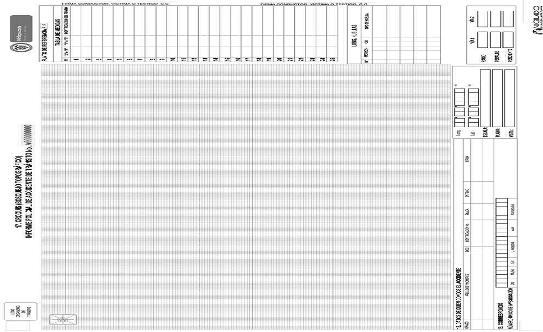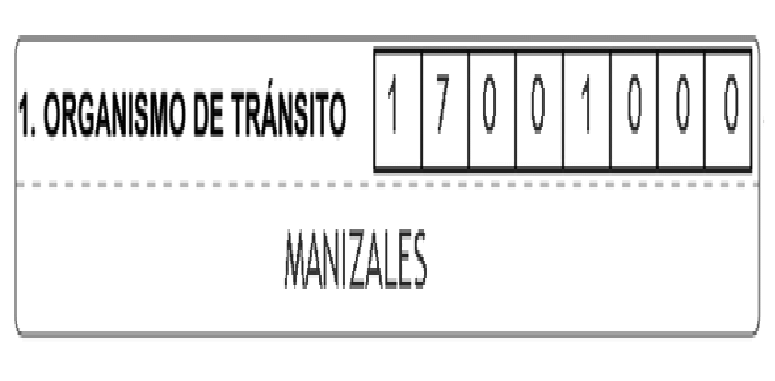 En el formato a utilizar por el personal de la Dirección de Tránsito y Transporte de la Policía Nacional, este campo aparecerá en blanco y será diligenciado por el agente que conozca del caso.