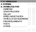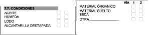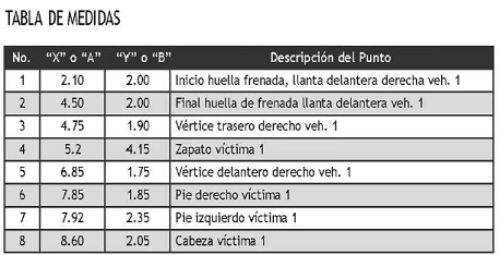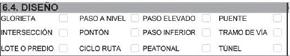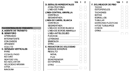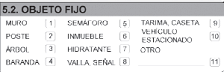 | 302 | Ausencia o deficiencia en demarcación. | Ausencia cuando no existe demarcación. Deficiencia cuando se encuentra borrosa o existe parte de ella. Se aplica para el sitio del accidente. |