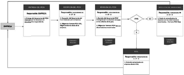 Así como la responsabilidad de la formulación del PESV recae sobre las entidades, organizaciones o empresas, que para cumplir sus fines misionales o en el desarrollo de sus actividades posean, fabriquen, ensamblen, comercialicen, contraten, o administren flotas de vehículos automotores o no automotores superiores a diez (10) unidades, o contraten o administren personal de conductores, avalar dichos planes es responsabilidad de las Autoridades de Tránsito donde esté domiciliada la entidad, organización o empresa, (cuando la empresa tiene varias sedes en distintas ciudades o municipios, se considera de carácter nacional y la responsable del proceso será la Superintendencia de Puertos y Transporte), quienes revisarán técnicamente los contenidos del documento PESV, emitirán las observaciones de ajuste a que haya lugar y avalarán o no dichos planes a través de un concepto de aprobación o reprobación, según sea el caso, para lo cual empleará la presente guía.