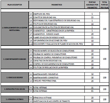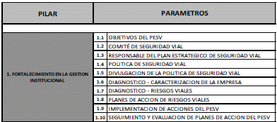 8.1.4. Variables de evaluación Parámetro POLÍTICA DE SEGURIDAD VIAL