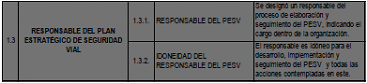 8.1.3. Variables de evaluación Parámetro RESPONSABLE DEL PLAN ESTRATÉGICO DE SEGURIDAD VIAL