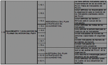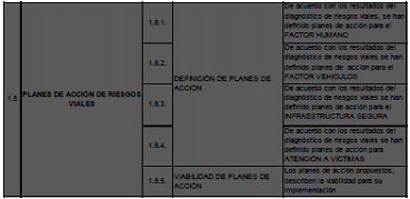 8.1.8. Variables de evaluación Parámetro PLANES DE ACCIÓN DE RIESGOS VIALES