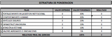 | PILAR | VALOR OBTENIDO | VALOR PONDERADO | RESULTADO | |