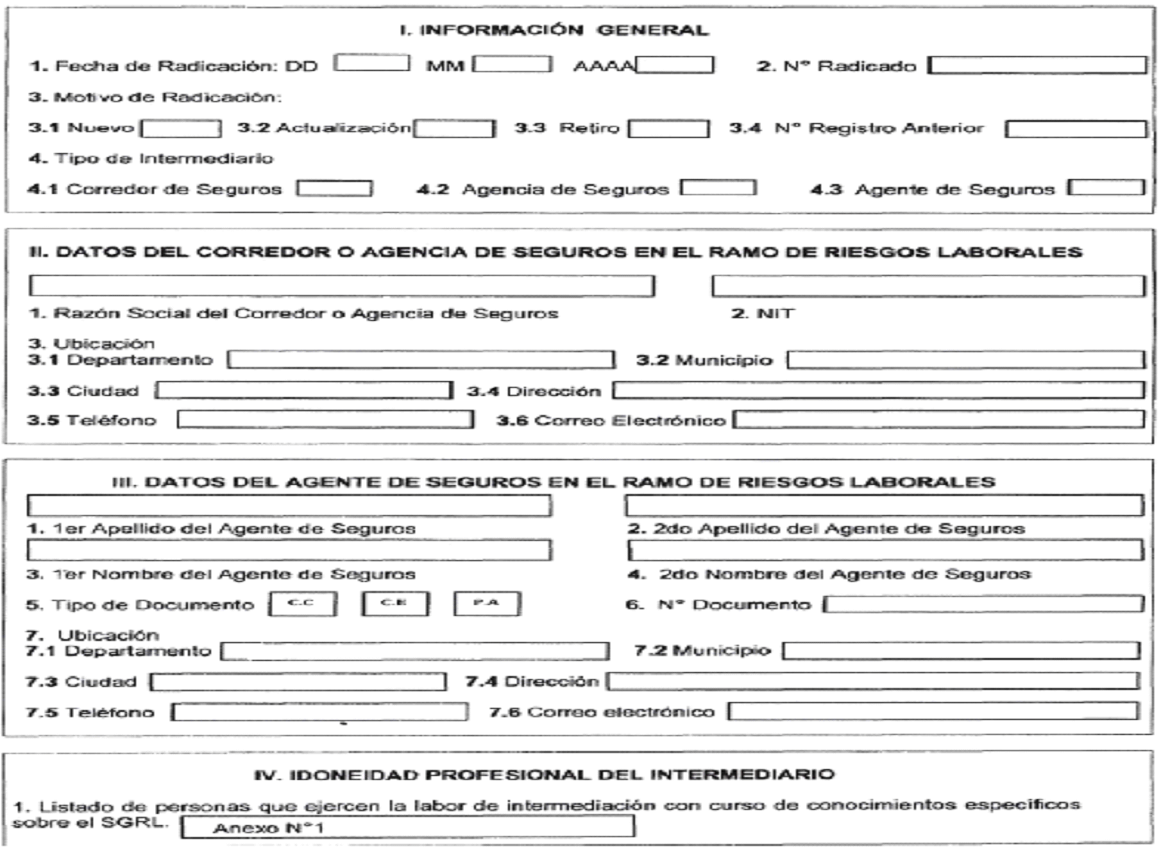 FORMULARIO ÚNICO DE INTERMEDIARIOS DE SEGUROS EN EL RAMO DE RIESGOS LABORALES