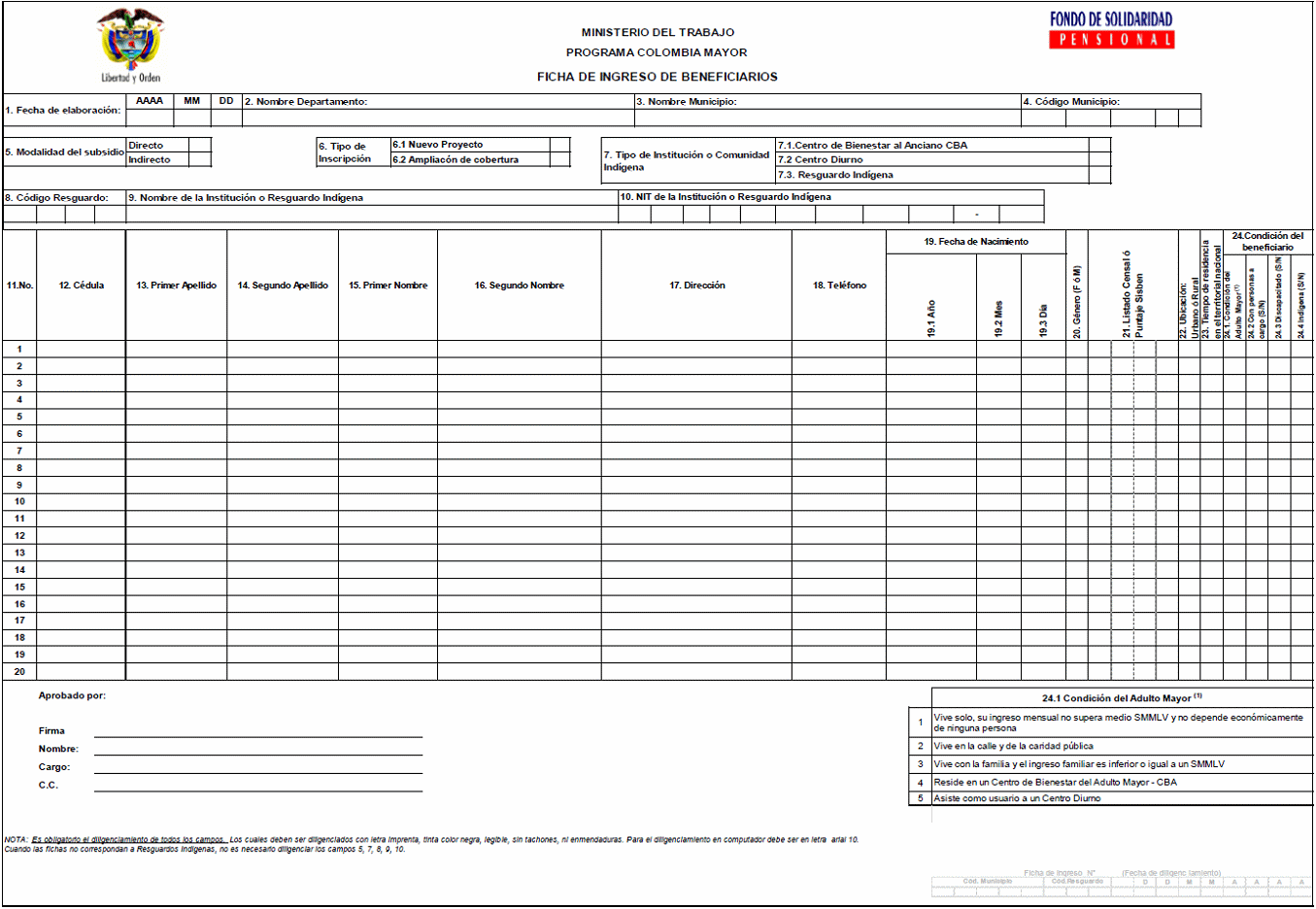 | Ministerio de la Protección Social | PROGRAMA DE PROTECCIÓN SOCIAL AL ADULTO MAYOR | ||||