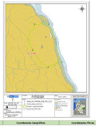 | 4 | 1° 52' 16,140” N | 67° 4' 15,418” W | 700235,532 | 1781512,67 |