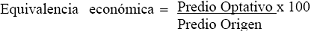Tabla 13. Equivalencia Económica basada en el Avalúo Comercial del predio origen y optativo.