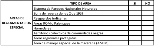 Tabla 2. Verificación del predio en áreas de reglamentación especial.
