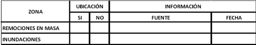 Tabla 3. Ubicación del Predio en Zonas de Amenazas Naturales No Mitigables
