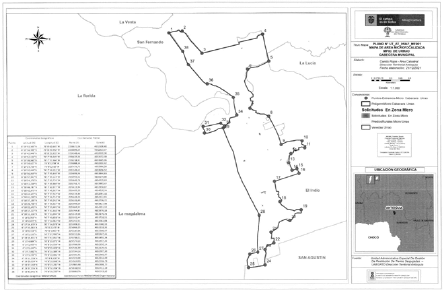 | 19 | 6° 18' 22,602” N | 76° 7' 35,681” W | 2255869,32 | 4654151,12 |