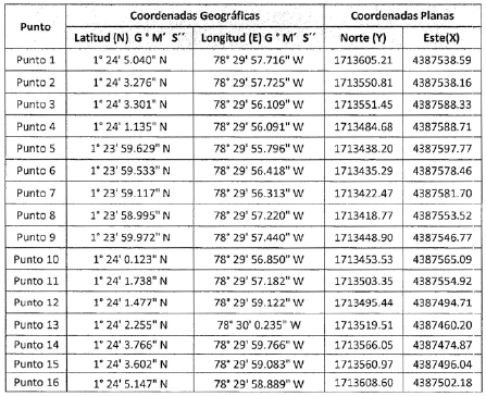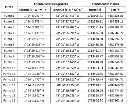 En atención a lo anterior, la Dirección Territorial Nariño de la Unidad de Restitución de Tierras, se propuso microfocalizar el área correspondiente a una hectárea y mil doscientos ochenta y ocho metros cuadrados (1 ha, 1288 m2), ubicado en la vereda Vaquerio, corregimiento de Llorente del municipio de Tumaco, departamento de Nariño conforme al plano del Informe de Microfocalización elaborado por el Área Catastral de esta Dirección Territorial, que forma parte integral del presente acto administrativo y que cuenta con las siguientes coordenadas geográficas en grados, minutos y segundos (Magna- Sirgas11), puntos extremos del área seleccionada, así: