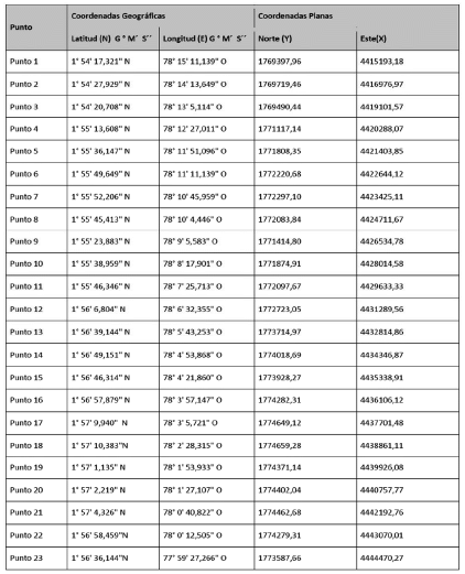Que en atención al índice de despojo evidenciado en las solicitudes de inscripción en el RTDAF, respecto de predios ubicados en la zona, la Dirección Territorial Nariño de la Unidad de Restitución de Tierras, propuso microfocalizar un tramo de la ribera del Río Patía, determinado mediante un buffer de 4 kilómetros de lado y lado del río, el cual se encuentra en jurisdicción del municipio de Magüí Payán, conforme lo representado en el mapa No. UT NR 52427 MF001 elaborado por esta Dirección Territorial, el cual forma parte integral del presente acto administrativo y que cuenta con las siguientes coordenadas geográficas en grados, minutos y segundos (MAGNA-SIRGAS1), puntos extremos del área seleccionada, así: