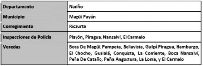 Primero. Microfocalizar un tramo de la ribera del Río Patía determinada mediante un buffer de 4 kilómetros de lado y lado del río, el cual se encuentra en su totalidad en jurisdicción del municipio de Magüí Payán, conforme lo representado en el mapa número UT NR 52427 MF001, elaborado por esta Dirección Territorial, el cual forma parte integral del presente acto administrativo y que cuenta con las coordenadas geográficas en grados, minutos y segundos (MAGNA-SIRGAS ) relacionados en la parte considerativa de este acto, área que se describe de la siguiente manera: