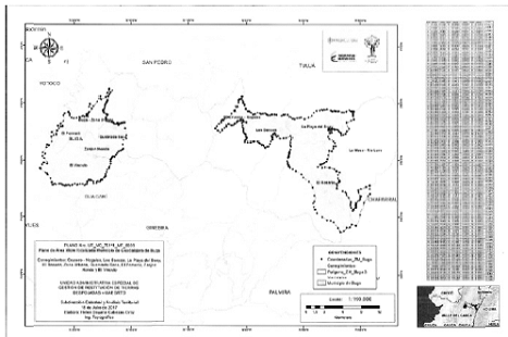 | 21 | 76° 1' 19,703” W | 3° 54' 0,741” N | 923286,09 | 783981,22 |