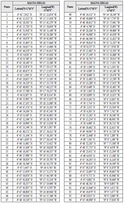 3. MAGNA-SIRGAS: Marco Geocéntrico Nacional de Referencia – Sistema de Referencia Geocéntrico para las Américas, es el sistema de coordenadas oficial, adoptado por Colombia mediante la Resolución 068 de enero 28 de 2005 del IGAC, en el que se deben presentar todos los trabajos de localización geográfica en los que se incluyen los levantamientos topográficos.