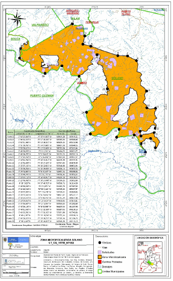 4 Del municipio de Solano, el casco urbano y algunas veredas se encuentran microfocalizadas mediante RQ 00349 del 25 de febrero de 2020, MICRO 1292 “Área Urbana de Solano, Tres Esquinas Y La Esperanza.”