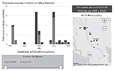 Por otra parte, indicó que la clasificación por tipologías para el municipio de Cartagena del Chaira, es Alta Afectación – Tipología I, debido a que presenta accidentes con mina antipersonal con posterioridad al año 2010, con un total de 64 víctimas discriminadas así: