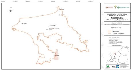 | 3 | 1423497,79 | 739420,96 | 8° 25' 6,791” N | 76° 26' 34,832” W |