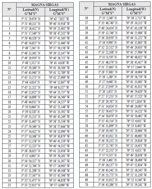 1. MAGNA-SIRGAS: Marco Geocéntrico Nacional de Referencia – Sistema de Referencia Geocéntrico para las Américas, es el sistema de coordenadas oficial, adoptado por Colombia mediante la Resolución número 068 de enero 28 de 2005 del IGAC, en el que se deben presentar todos los trabajos de localización geográfica en los que se incluyen los levantamientos topográficos.