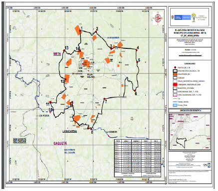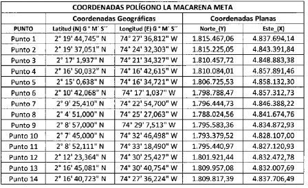 Que, atendiendo a que la Unidad de Restitución ha realizado la intervención de las áreas que cuentan con mayor despojo y por lo tanto es indispensable atender las demás solicitudes de inscripción en el RTDAF con el fin de culminar la intervención de la Unidad de Restitución en las mismas, la Dirección Territorial Meta de la Unidad de Restitución de Tierras, se propuso microfocalizar las veredas Aguas Claras, Bocana Caño Gringo, Caño Mono, El Condor, El Oriente, La Cabaña N° 2, La Florida, La Machaca, La Sierra, Las Delicias, Laureles Alto, Los Alpes, Los Pinos, San Juan De Lozada, Selva Bajo Lozada, Unión Macarena, Villa del Rio, Villa Rodas del municipio de La Macarena, departamento del Meta, conforme lo representado en el mapa N° UT_MT_50350_MF004, elaborado por esta Dirección Territorial, que forma parte integral del presente acto administrativo y que cuenta con las siguientes coordenadas geográficas en grados, minutos y segundos (MAGNA-SIRGAS1) puntos extremos del área seleccionada, así: