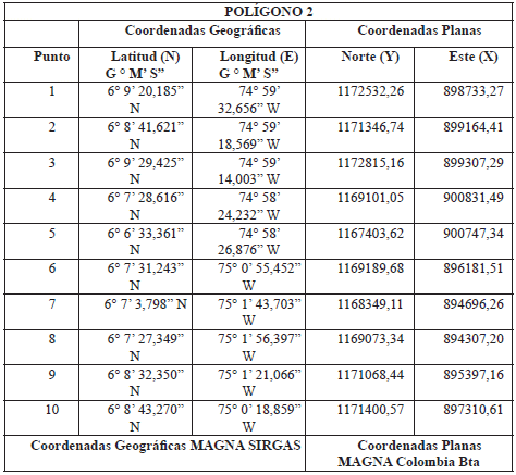 Que la Dirección Territorial Antioquia de la UAEGRTD propuso microfocalizar las veredas denominadas San Blas y Santa Inés, del municipio de San Carlos, en el departamento de Antioquia, conforme lo representado en el MAPA_MICRO_UT_ AT_05649_MF_012, elaborado por la Dirección Territorial Antioquia, mapa que forma parte integral del presente acto administrativo y que cuenta con las siguientes coordenadas geográficas en grados, minutos y segundos (MAGNA-SIRGAS1) puntos extremos del área seleccionada, así: