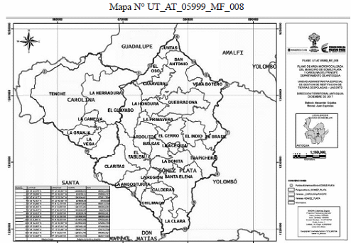 La anterior zona, conforme lo representado en el Mapa número UT_AT_05999_ MF_008, elaborado por esta Dirección Territorial, que forma parte integral del presente acto administrativo y que cuenta con las coordenadas geográficas en grados, minutos y segundos (MAGNA-SIRGAS(2)4) relacionados en la parte considerativa.
