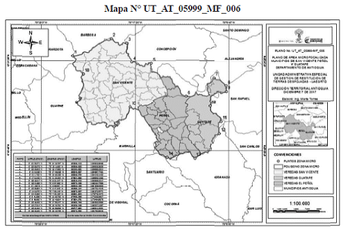 La anterior zona, conforme lo representado en el Mapa N° UT_AT_05999_MF_006 elaborado por esta Dirección Territorial, que forma parte integral del presente acto administrativo y que cuenta con las coordenadas geográficas en grados, minutos y segundos (MAGNA-SIRGAS(1)3) relacionados en la parte considerativa.