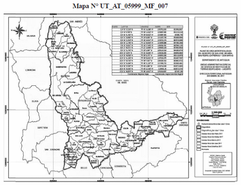 La anterior zona, conforme lo representado en el Mapa N° UT_AT_05999_MF_007 elaborado por esta Dirección Territorial, que forma parte integral del presente acto administrativo y que cuenta con las coordenadas geográficas en grados, minutos y segundos (MAGNA-SIRGAS6(1)) relacionados en la parte considerativa.
