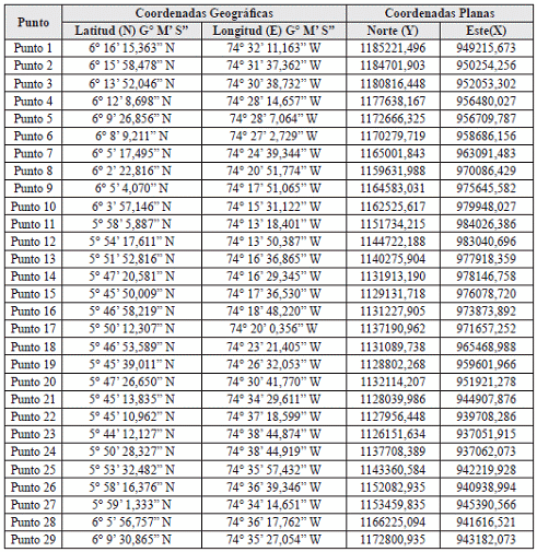 1. MAGNA-SIRGAS: Marco Geocéntrico Nacional de Referencia – Sistema de Referencia Geocéntrico para las Américas, es el sistema de coordenadas oficial, adoptado por Colombia mediante la Resolución número 068 de enero 28 de 2005 del IGAC, en el que se deben presentar todos los trabajos de localización geográfica en los que se incluyen los levantamientos topográficos.